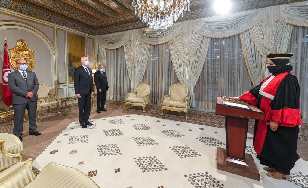 أشرف رئيس الجمهورية قيس سعيد اليوم الخميس 25 مارس 2021 على موكب اداء اليمين للعضو الجديد بالمجلس الأعلى للقضاء، السيدة سنية بن عمار، رئيس الدائرة الابتدائية الأقدم بالمحكمة الإدارية.