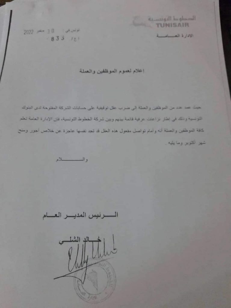 جاء منذ قليل في توضيح صادر عن الخطوط التونسية أنه”تبعا […]