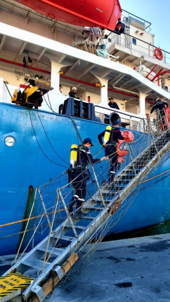 وتمثل سيناريون العملية في حصول إختناق وتسمّم بمادة H2S لشخصين من أفراد طاقم بغرفة المحرك لسفينة راسية بالميناء التجاري أثناء أداء مهام الصيانة والتفقد الدوري ، وإندلاع حريق بشاحنة صهريج قرب السفينة الراسية.