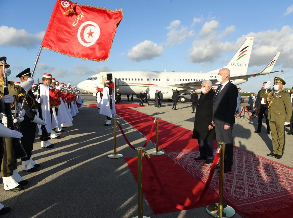 استقبل رئيس الجمهورية قيس سعيّد، بعد ظهر اليوم الثلاثاء بالجناح الرئاسي بمطار تونس قرطاج الدولي، محمود عبّاس، رئيس دولة فلسطين، الذي يؤدي زيارة رسمية إلى تونس.