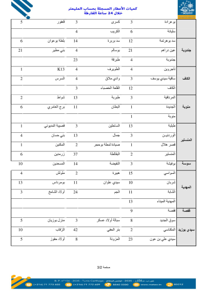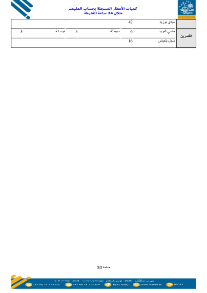 كشف المعهد الوطني للرصد الجوي عن القائمة الأولية لكميات الأمطار المسجلة بحساب المليمتر خلال الـ 24 ساعة الفارطة