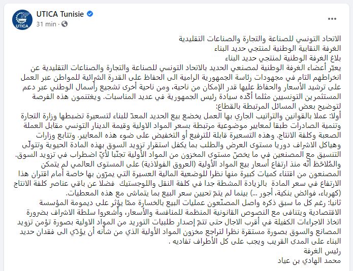 وذكّرت الغرفة الوطنية لمنتجي حديد البناء في بلاغها بصعوبات عملية إنتاج حديد البناء خاصة منذ ارتفاع أسعار بيع المواد الأولية (العروق الفولاذية) على المستوى العالمين حيث لم يتمكن المصنعون من اقتناء كميات كبيرة منها نظرا للوضعية المالية العسيرة التي يمرّون بها خاصة أمام اقتران هذا الارتفاع في سعر المادة بالزيادة المشطة جدا في كلفة النقل واللوجستيك فضلا عن باقي عناصر كلفة الإنتاج (كهرباء، فوائض بنكية، أجور …) بينما لم يتمّ تحيين سعر البيع بما يتماشى مع هذه المعطيات.
