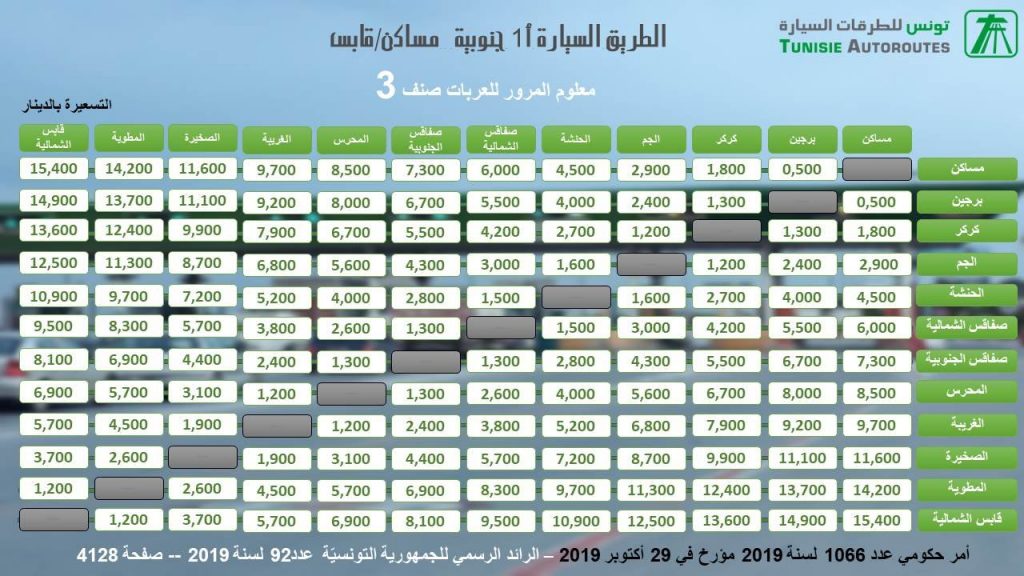 الطريق السيارة مساكن – قابس/ الكشف عن تعريفة المرور