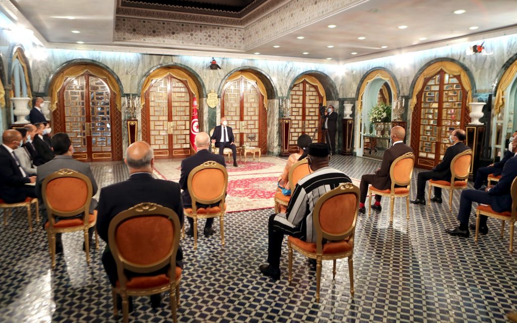 استقبل رئيس الجمهورية قيس سعيّد، صباح اليوم الجمعة 25 جوان 2021 بقصر قرطاج، الوزراء الأفارقة الذين شاركوا في الدورة الرابعة لمنتدى التمويل والاستثمار والتجارة الذي ينتظم هذه السنة تحت إشراف رئيس الدولة. وحضر هذا اللقاء محافظ البنك المركزي، ورئيس مجلس الأعمال التونسي الإفريقي ونائبه المكلّف بالعلاقات الدولية. وشدّد رئيس الجمهورية على أهمية حسن توظيف الموارد الطبيعية والبشرية الهائلة التي تتوفّر عليها إفريقيا وفق تصوّر جديد لمنوال الاستثمار والتنمية بما يُمكّن من تحقيق آمال وتطلعات شعوب القارة ويساعدها على مواجهات التحديات المختلفة التي تواجهها. وأكّد رئيس الجمهورية، أيضا، على ضرورة ايجاد حلول مبتكرة لمشاكل القارة نابعة من إرادة دولها وشعوبها في إطار مقاربة جماعية تكرّس قيم الوحدة والتضامن.