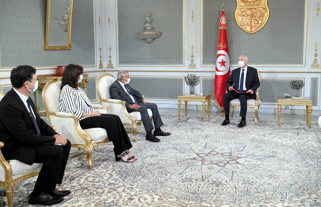 استقبل رئيس الجمهورية قيس سعيد، اليوم السبت، بقصر قرطاج، رئيس الجمعية المهنية التونسية للبنوك والمؤسسات المالية محمد العقربي، والذي كان مرفوقا بعضوي الجمعية منى سعيد وهشام الرباعي.