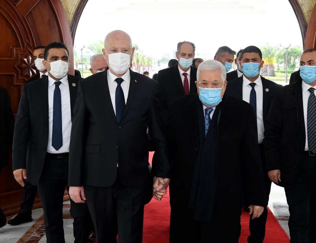 ودّع رئيس الجمهورية قيس سعيد، ظهر اليوم الخميس 9 ديسمبر 2021 بمطار تونس قرطاج الدولي، رئيس دولة فلسطين محمود عبّاس في ختام زيارته الرسمية إلى تونس من 7 إلى 9 ديسمبر 2021.