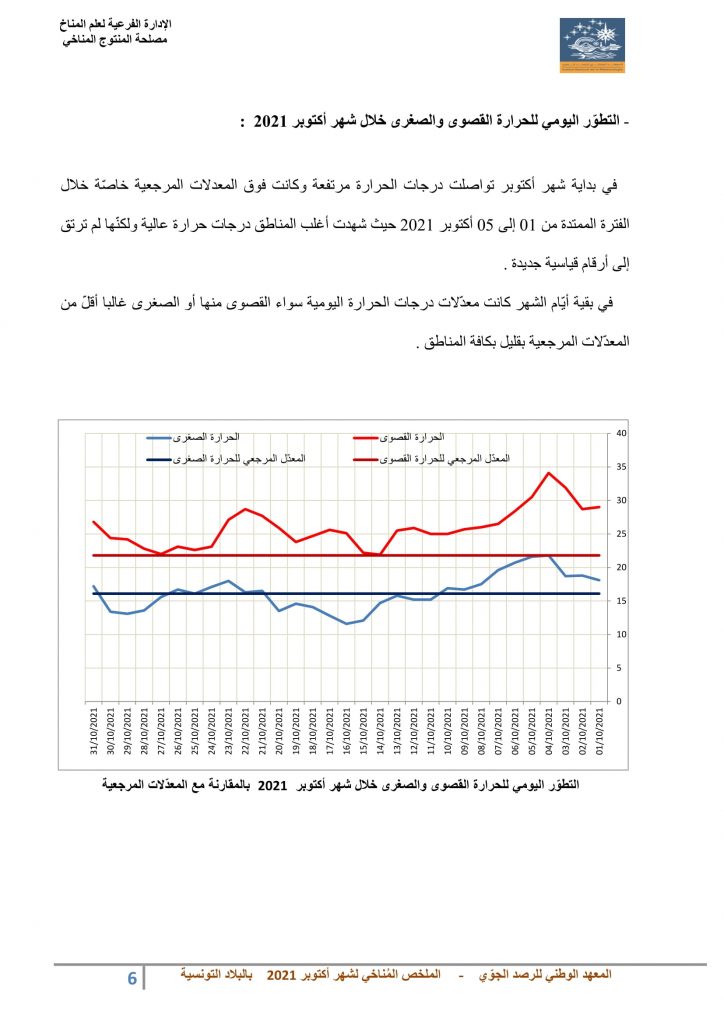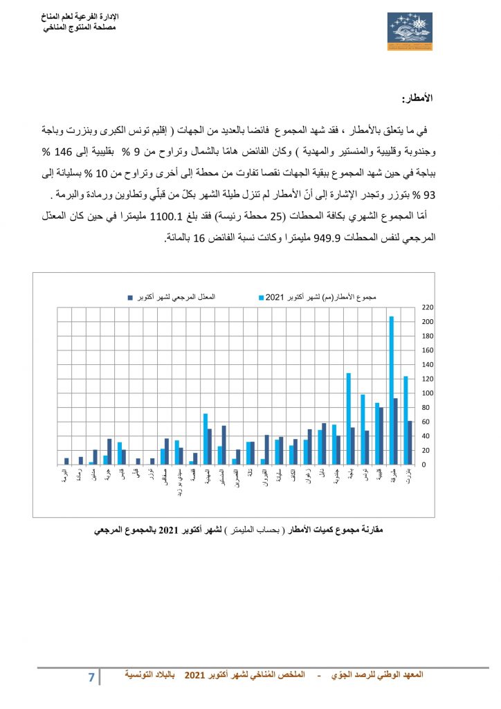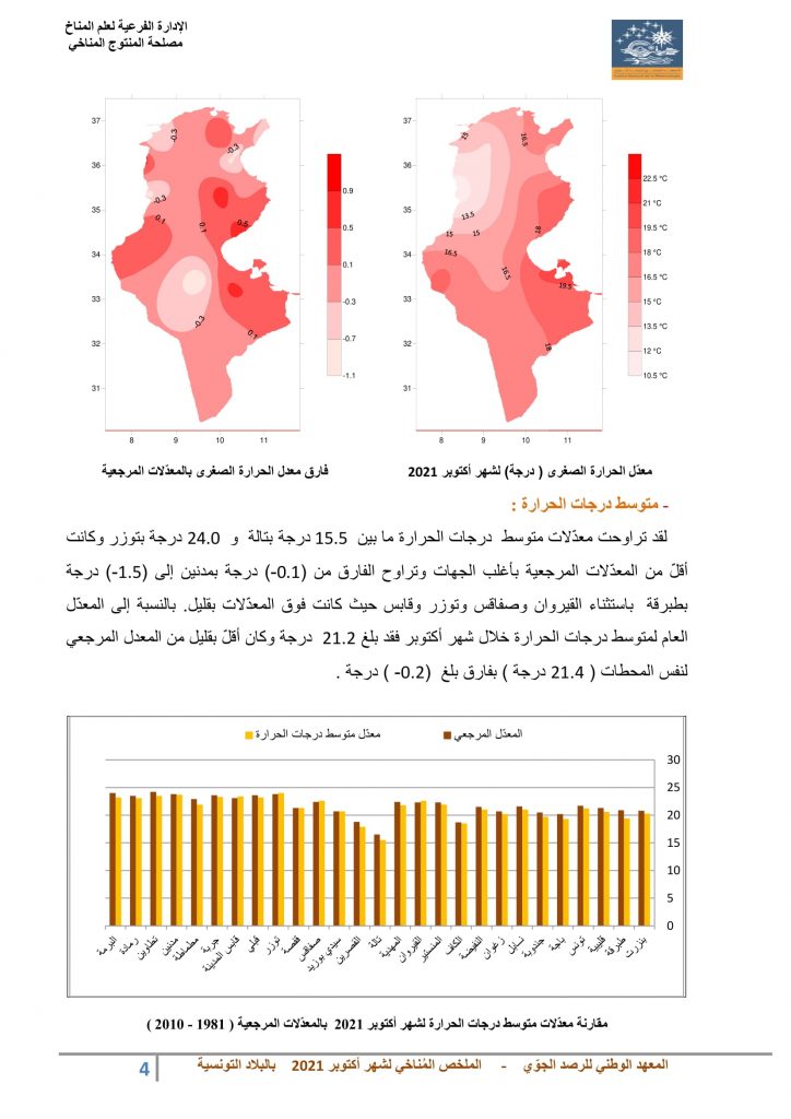 ويمكن تبين كل تفاصيل الوضع المناخي خلال شهر أكتوبر الماضي من خلال الوثائق التالية: