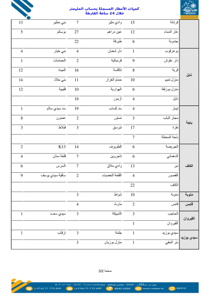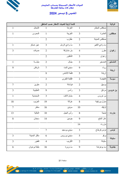 وطنية: نشر المعهد الوطني للرصد الجوي اليوم الخميس 5 ديسمبر 2024 ، كميات الأمطار المسجلة خلال ال24 ساعة الاخيرة بمختلف الجهات.