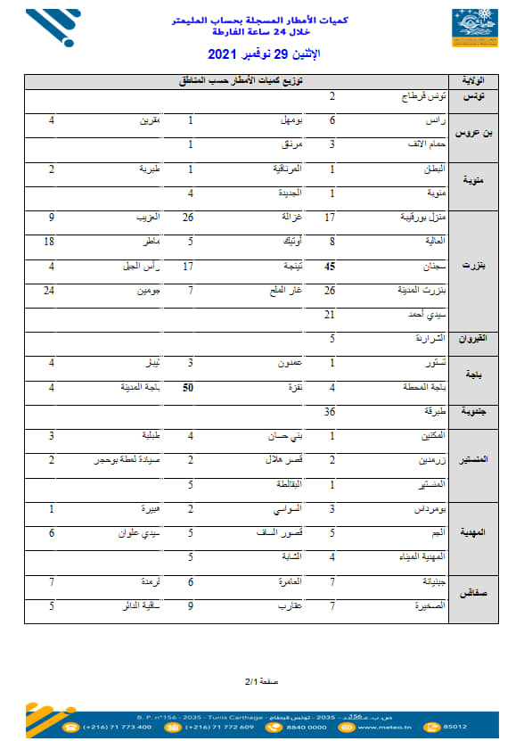 فيما يلي كميات الأمطار المسجلة خلال الـ 24 ساعة الماضية […] قراءة المزيد فيما يلي كميات الأمطار المسجلة خلال الـ 24 ساعة الماضية بمختلف الجهات كما أعلن عنها المعهد الوطني للرصد الجوي وكانت أكبر كمية قد سجلت في نفزة من ولاية باجة: