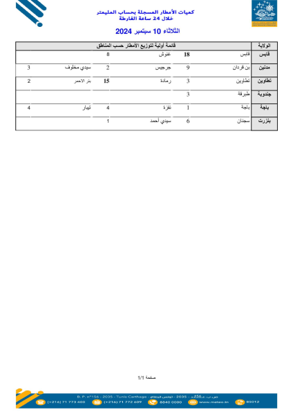 وطنية: نشر المعهد الوطني للرصد الجوي قائمة لكميات الأمطار المسجلة بحساب المليمتر خلال 24 ساعة الفارطة قراءة المزيد نشر المعهد الوطني للرصد الجوي قائمة لكميات الأمطار المسجلة بحساب المليمتر خلال 24 ساعة الفارطةأعلاها ببني مطير.. كميات الامطار المسجلة يوم 26 نوفمبركميات أمطار يوم 11 ماي 2025كميات امطار 5 ماي 2025المزيد من الأخبار