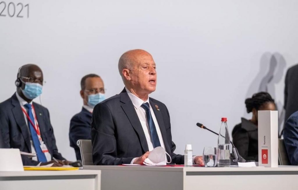 رئيس الدولة دعا إلى شطب ديون الدول الفقيرة أو تخفيف جانب هام منها، لا سيما مع ارتفاع حجم هذه الديون والفوائض المنجرة عنها. من جهة أخرى، اعتبر رئيس الجمهورية أنّ الظرف الدقيق الذي تعيشه القارة الإفريقية جّراء التأثيرات السلبية لجائحة كورونا على معدلات التنمية يتطلب تكاتفا أكثر من أجل بلورة رؤية شاملة ومتضامنة لمعالجة هذه التحديات بصورة هيكلية ودائمة، وأعلن، في هذا الخصوص، دعم تونس للدعوات الدولية والإقليمية لرفع الحظر عن براءات الاختراع للقاحات المضادة لفيروس كوفيد-19 بما يساعد على تعميم انتفاع كل الشعوب والدول بهذه اللقاحات. كما أعلن رئيس الدولة انخراط تونس في الدعوة التي أطلقها قادة أفارقة لإنشاء مناطق إنتاج إقليمية للقاحات ضد فيروس كوفيد-19. وأكد رئيس الجمهورية على أهمية اعتماد مقاربة جديدة تراعي التغيرات السياسية والاقتصادية في العالم وتمكن من إيجاد حلول للقضايا الإقليمية والدولية الراهنة، فضلا عن إيلاء أهمية إلى الجانب الإنساني في السياسات الاقتصادية لحفظ كرامة الشعوب وتحقيق تطلعاتها في الاستقرار والتنمية.