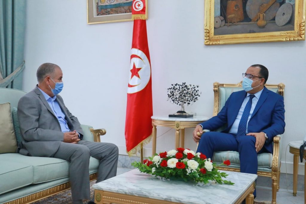 تحادث رئيس الحكومة هشام المشيشي ظهر اليوم الأربعاء بقصر الحكومة بالقصبة مع الأمين العام للاتحاد العام التونسي للشغل نور الدين الطبوبي.