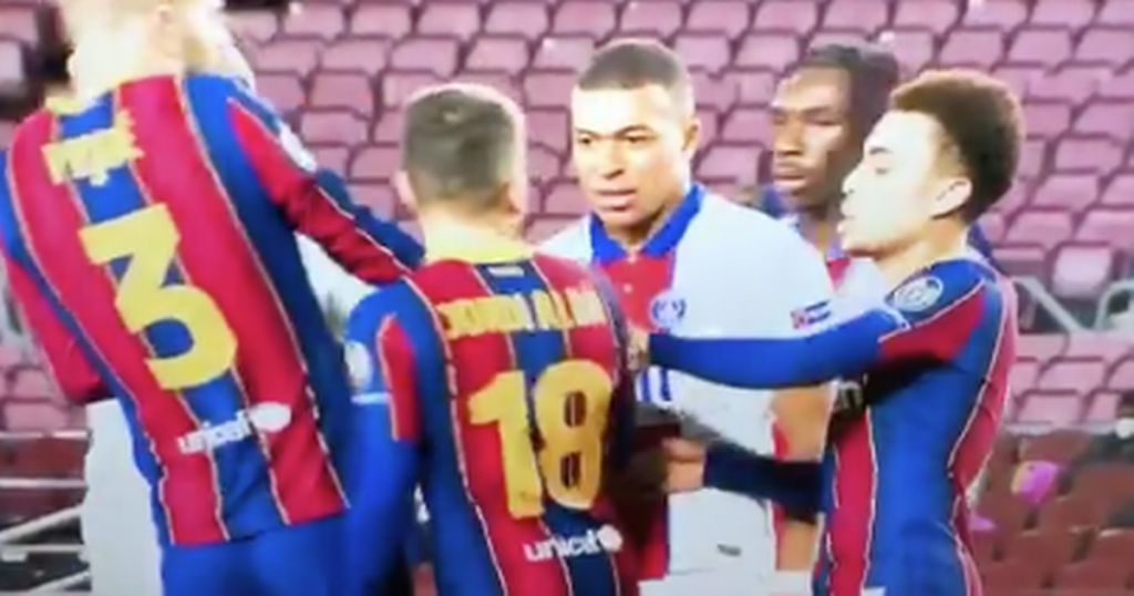 هدد مهاجم نادي باريس سان جيرمان، كيليان مبابي، الظهير الأيسر لبرشلونة، جوردي ألبا، بالقتل، خلال مجريات المباراة التي جمعت الفريقين يوم الثلاثاء في ذهاب ثمن نهائي دوري الأبطال.