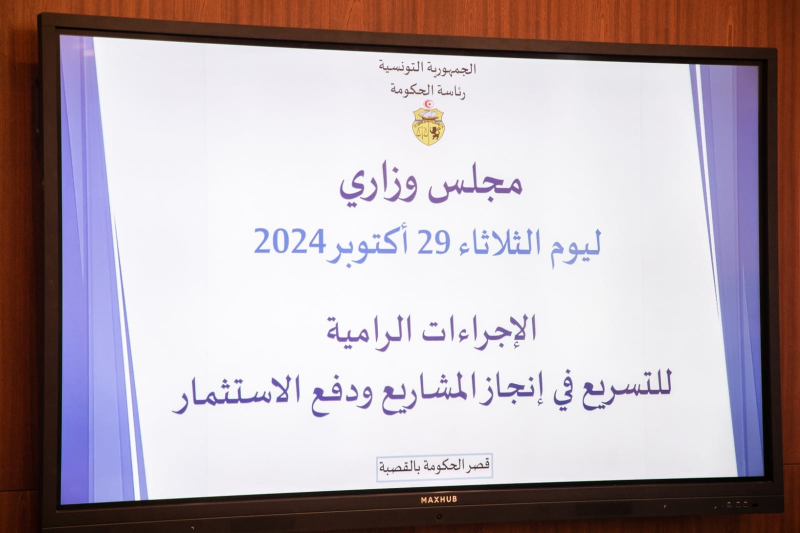 وطنية: أشرف رئيس الحكومة كمال المدوري يوم الثلاثاء 29 أكتوبر 2024 بقصر الحكومة بالقصبة على مجلس وزاري حول الإجراءات والمقترحات الرامية للتسريع في إنجاز المشاريع العمومية ودفع الاستثمار الخاصّ.