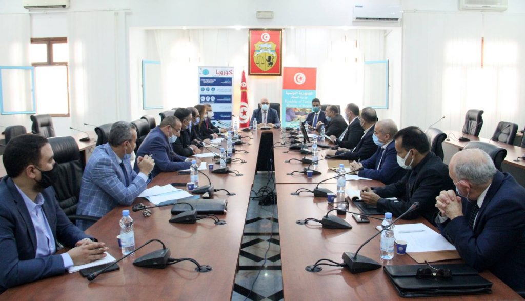 انتظمت بمقرّ وزارة الصحة اليوم الإثنين 22 فيفري 2021، جلسة عمل بإشراف وزير الصحة الدكتور فوزي مهدي وبحضور ممثلي عدد من الوزارات والهياكل المهنية في القطاع السياحي خصصت لمتابعة وتقييم إجراءات الحجر الصحي الإجباري وتدارس السبل الكفيلة بمزيد إحكام تطبيقها في كافة مراحلها.