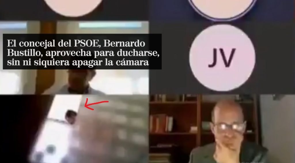 قدم عضو مجلس البلدية في شمال إسبانيا برناردو بوستيلو استقالته، إثر تركه فيديو اجتماع المجلس عبر الإنترنت دائرا عن طريق الخطأ أثناء استحمامه