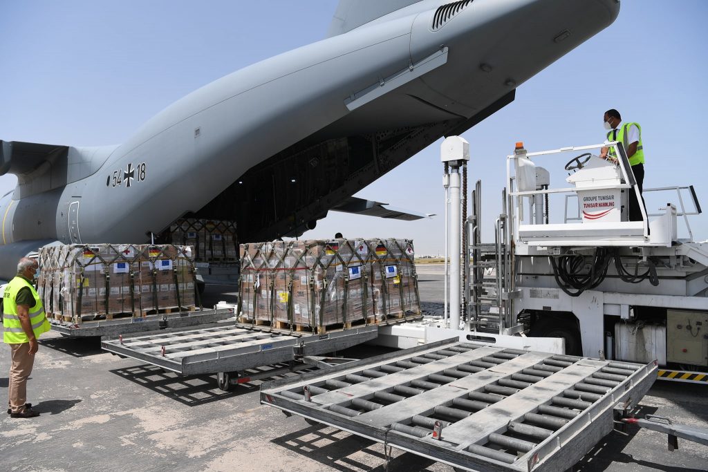 حطت صباح اليوم الإثنين بمطار تونس قرطاج الدولي، طائرة عسكرية ألمانية محمّلة بأسرّة طبية ومعدات ومستلزمات صحية واختبارات تحليل سريع ضد فيروس كورونا ممنوحة من جمهورية ألمانيا الاتحادية الصديقة لدعم جهود تونس في مواجهة جائحة كوفيد-19.