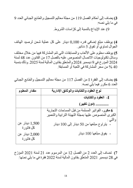 وطنية: جاي في الفصل 21 من مشروع قانون المالية لسنة 2026 في باب تعزيز موارد الصناديق الاجتماعية توظيف معاليم على فاتورات الشراءات من المساحات التجارية الكبرى بمبلغ 1.5 د لكل فاتورة تساوي أو تفوق 50 دينارا و2 د على كل فاتورة تساوي أو تفوق 100 دينار.