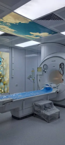 آلة حديثة للتصوير بالرنين المغناطيسي (IRM) بقوة 1.5 تسلا، بكلفة 6 مليارات دينار.