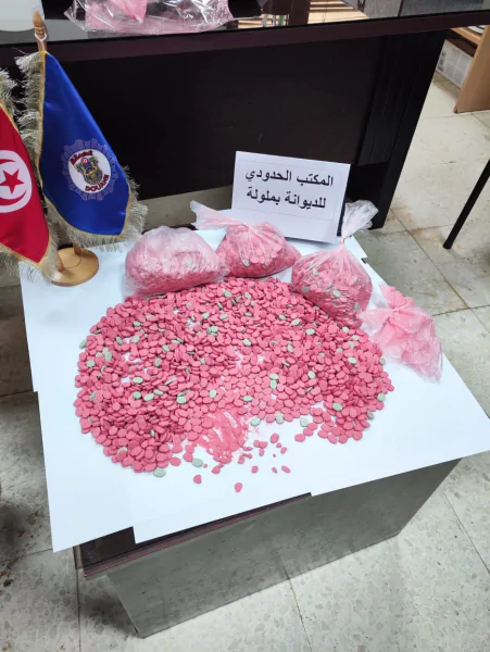 تمكنت مصالح الديوانة بالمعبر الحدودي بملولة من ضبط كمية هامة من الأقراص المخدرة مخفية بإحكام على متن سيارة تحمل ترقيما أجنبيا حيث بتفتيش السيارة المذكورة على مستوى نقطة مغادرة البلاد التونسية ، تم العثور في أماكن مختلفة بلوحة القيادة وبمحرك السيارة على حوالي 4500 قرصا مخدرا نوع اكستازي إضافة إلى 140 غرام أقراص مهشمة من المادة المخدرة نفسها. تم تحرير محضر حجز في الغرض وتم التنسيق مع مصالح النيابة العمومية التي أذنت بإحالة الملف إلى المصالح الأمنية المختصة لمواصلة التحريات.