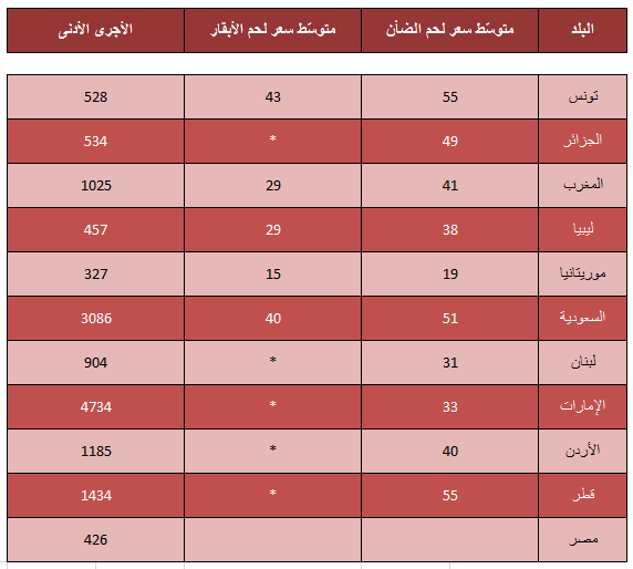 ويرجع سعر كيلوغرام واحد من لحم الضأن حاليًا إلى نحو 11% من الأجر الشهري الأدنى المضمون (“السميغ”)، ما يجعل أسعار اللحوم الحمراء من بين الأعلى عربيًا وأحيانًا تتجاوز الأسعار الأوروبية رغم الفارق في القدرة الشرائية.