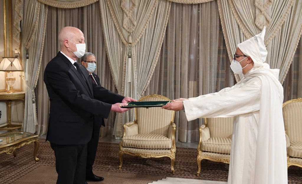 أشرف رئيس الجمهورية قيس سعيّد، اليوم الثلاثاء بقصر قرطاج، على موكب تسلّم أوراق اعتماد سفراء جدد بتونس لدول شقيقة وصديقة وهم: