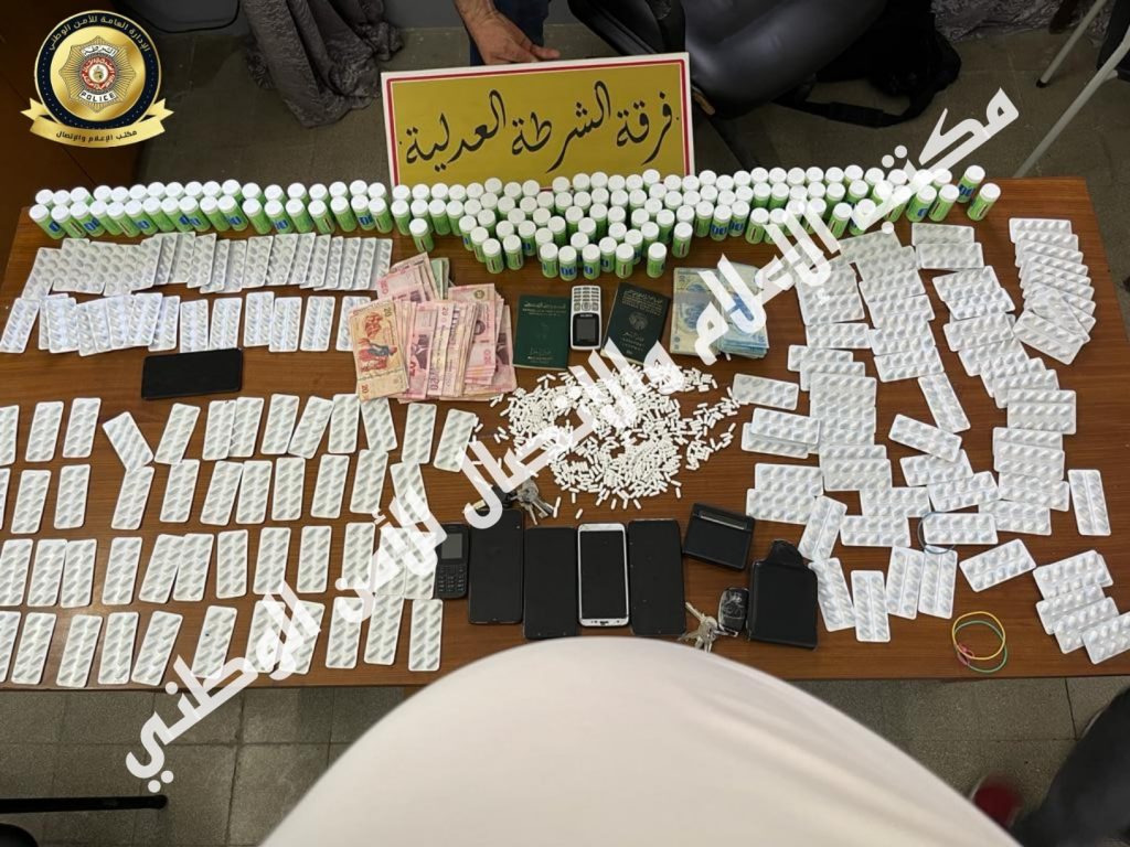 تمكنت وحدات الأمنية التابعة لفرقة الشرطة العدلية بقرمبالية بالتنسيق مع فرقة الشرطة العدلية بسليمان من القبض على شخص على متن سيارة خاصة رفقة زوجته وإبنته، بتفتيشها تفتيشا دقيقا عُثر على 5568 قرصا مخدّرا من مختلف الأنواع مخفية بإحكام بالباب الجانبي للسيارة.