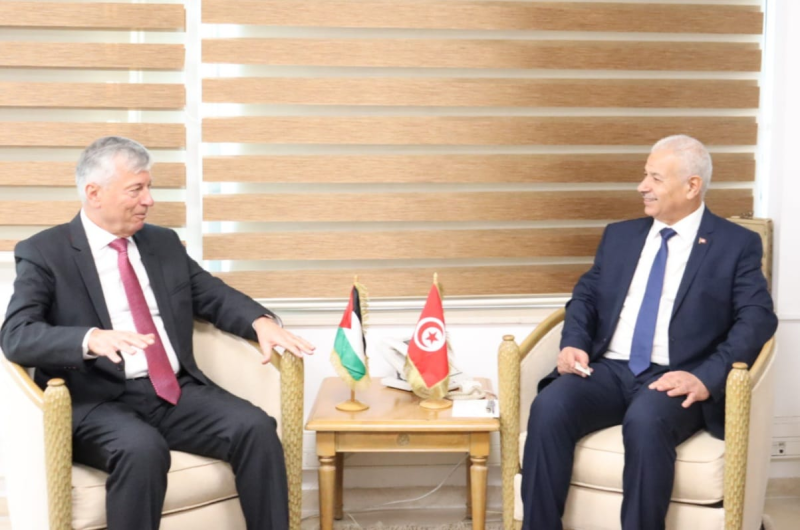 وتطرق اللقاء إلى واقع وآفاق التعاون الاقتصادي والتجاري بين تونس وفلسطين وسبل تطوير التبادل التجاري.