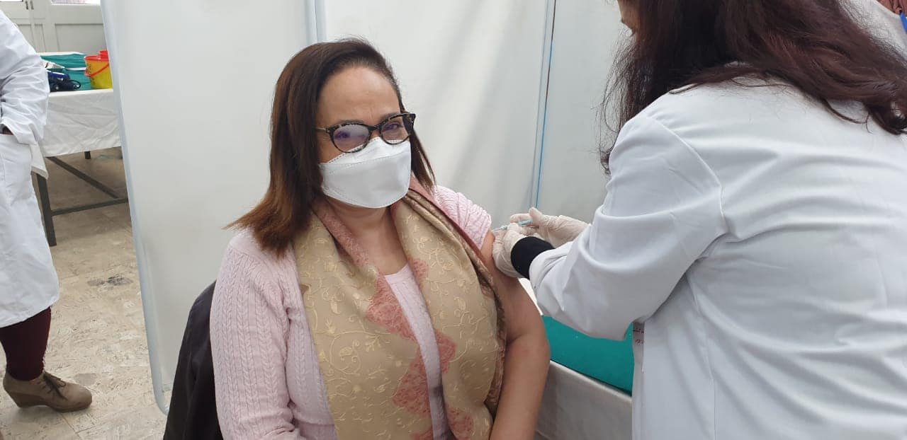 تلقت اليوم الإثنين 22 مارس 2021 الدكتورة نصاف بن علية المديرة العامة للمرصد الوطني للأمراض الجديدة والمستجدة وعضو اللجنة العلمية لمتابعة انتشار فيروس كورونا الجرعة الأولى من لقاح فايزر.