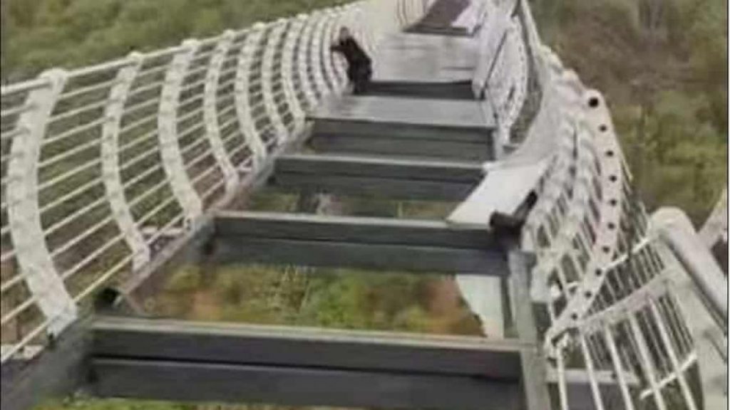 وأظهرت الصور على وسائل التواصل الاجتماعي الرجل وهو يتشبّث بجانب الجسر، وتحيط به فجوات حيث كانت الألواح الزجاجية موجودة في السابق.