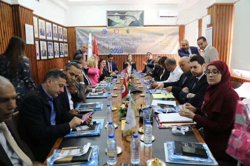 واستهل الوفد البرلماني زيارته بعقد جلسة عمل بمقر ديوان البحرية التجارية والموانئ أشرفت عليها الرئيسة المديرة العامة للديوان التي أكدّت أنّ ميناء رادس التجاري المختص في التصرف في الحاويات والمجرورات يعتبر من أهم الموانئ من بين 08 موانئ في الجمهورية التونسية، حيث يمثل 25 % من النشاط الوطني في هذا المجال. وأضافت أن الديوان يعمل على تحسين مردودية كل الموانئ من خلال إعداد مخطط مديري لكافة موانئ تونس في أفق 2040.