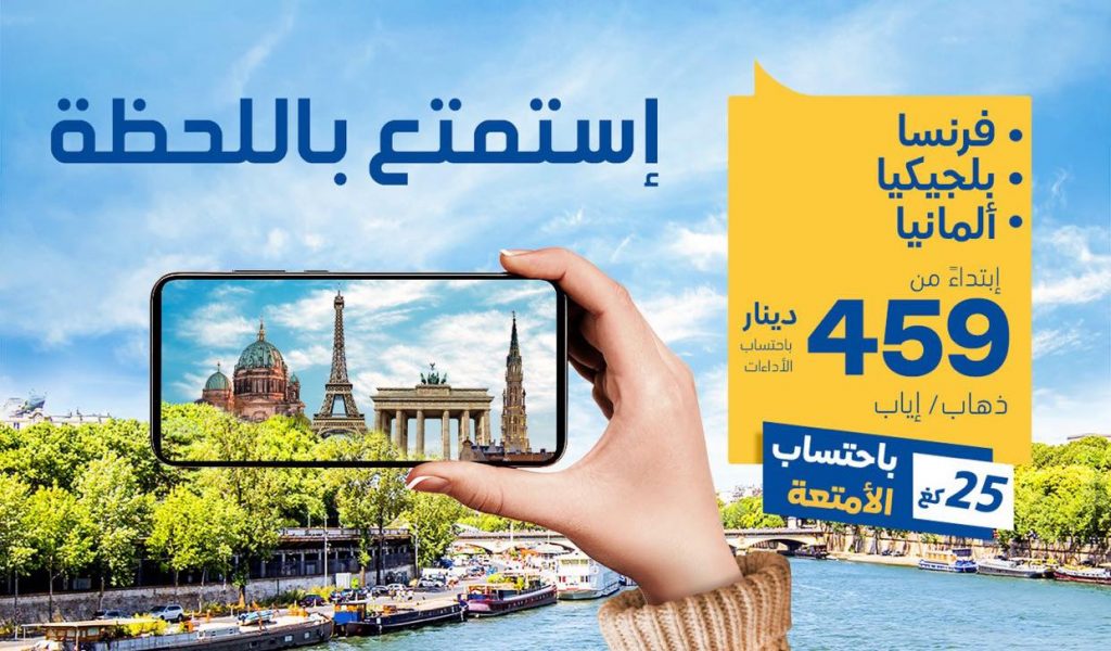 فابتداء من 459 دينارا فقط للتذكرة ذهابا وإيابا تتضمن 25كلغ باحتساب الأمتعة، بامكان حرفاء نوفلار السفر بعرض مغري نحو وجهاتهم المفضلة والتي تشمل :