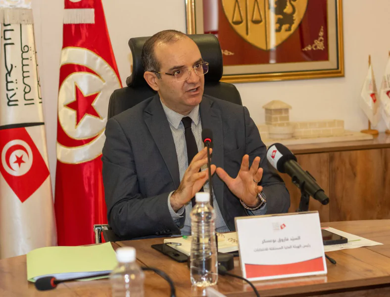 أشرف فاروق بوعسكر، رئيس الهيئة العليا المستقلة للانتخابات اليوم الاربعاء 12 فيفري 2025 على اجتماع لمجلس الهيئة
