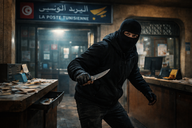 وذكر المصدر ذاته أن المظنون فيه استغل حالة الطقس السيء وخلو المكان من المارة ليقتحم مركز البريد، مهددًا العاملين بسكين قبل أن يتمكن من الاستيلاء على مبلغ مالي والفرار من المكان. وأضاف أن المشتبه به أخفى ملامحه عبر وضع لثاما على وجهه.
