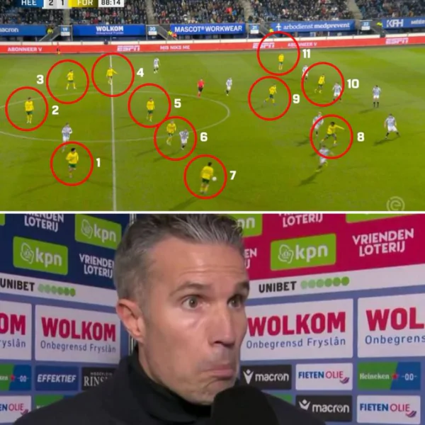 وقال فان بيرسي غاضبا بعد اللقاء: “أجد ما سبق هذا الهدف غريبا جدا. كان لدى فورتونا سيتارد اثني عشر رجلا في الملعب لمدة دقيقة قبل رمية التماس تلك. والظاهر أن ذلك جائز وممكن. لا يمكنك أن تتخيل ذلك؟ لقد سمحوا بذلك بكل بساطة”.