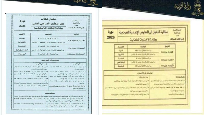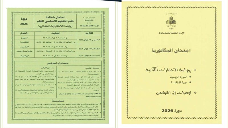 ويأتي هذا الإعلان في إطار ضبط روزنامة الامتحانات الوطنية للسنة الدراسية 2025-2026، وتمكين التلاميذ والأولياء من الاطلاع على المواعيد الرسمية للاستعداد للامتحانات في مختلف المستويات التعليمية.