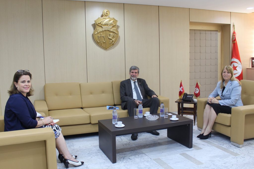 كما تناول اللقاء وفق بلاغ لوزارة العدل ملف استرجاع الاموال المنهوبة والمهربة الى الخارج وخاصة المودعة في البنوك السويسرية والتي هي محل متابعة قضائية من القضاء التونسي والقضاء السويسري.