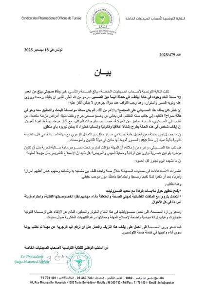 وطنية: نقابة الصيدليات الخاصة تدعو إلى فتح تحقيق عاجل لكشف ملابسات الحادثة.