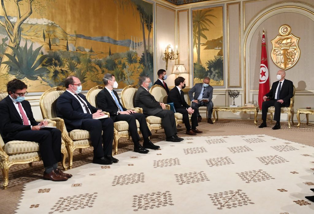 استقبل رئيس الجمهورية قيس سعيّد، مساء اليوم الجمعة 13 أوت 2021 بقصر قرطاج، وفدا رسميا أمريكيا ترأسّه جوناثان فاينر، مساعد مستشار الأمن القومي، الذي كان محمّلا برسالة خطية موجّهة إلى رئيس الدولة من قبل جوزيف روبينيت بايدن، رئيس الولايات المتحدة الأمريكية.وذكّر رئيس الجمهورية، خلال هذا اللقاء، بأن التدابير الاستثنائية التي تم اتخاذها تندرج في إطار تطبيق الدستور وتستجيب لإرادة شعبية واسعة، لا سيّما في ظل الأزمات السياسية والاقتصادية والاجتماعية واستشراء الفساد والرشوة.وحذّر رئيس الدولة من محاولات البعض بث إشاعات وترويج مغالطات حول حقيقة الأوضاع في تونس، مبيّنا، أنه لا يوجد ما يدعو للقلق على قيم الحرية والعدالة والديمقراطية التي تتقاسمها تونس مع المجتمع الأمريكي.وأشار رئيس الجمهورية إلى أنه تبنى إرادة الشعب وقضاياه ومشاغله ولن يقبل بالظلم أو التعدي على الحقوق أو الارتداد عليها، مؤكّدا على أن تونس ستظل بلدا معتدلا ومنفتحا ومتشبثا بشراكاته الاستراتيجية مع أصدقائه التاريخيين.ومن جانبه، أشار جوناثان فاينر إلى أن الرئيس الأمريكي يتابع تطور الأوضاع في بلادنا، وهو يكنّ كل الاحترام لتونس ولرئيسها.وأشار إلى أن الإدارة الأمريكية تعلم حجم ونوعية التحديات التي تواجهها تونس، لا سيّما منها الاقتصادية والصحية.كما أكّد مساعد مستشار الأمن القومي الأمريكي على أن الولايات المتحدة الأمريكية متمسّكة بصداقتها الاستراتيجية مع تونس وتدعم المسار الديمقراطي فيها، وتتطلّع إلى الخطوات المقبلة التي سيتخذها رئيس الجمهورية على المستويين الحكومي والسياسي.