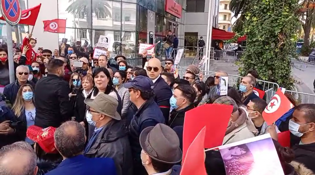 وخاطبت رئيسة الحزب الدستوري الحر عبير موسي، أنصارها قائلة “وحشتوني وحشتوني”، كما هتف أنصار الدستوري الحر بشعار “عنا عبير عنا”.