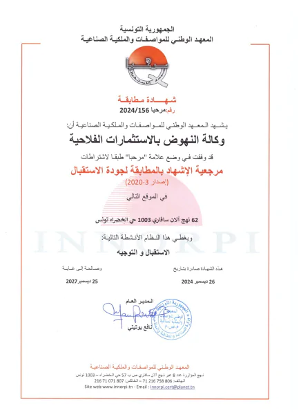 وجرى حفل تسليم العلامة الجديدة بإشراف المديرة العامّة للوكالة، إنجي الدقي، والمدير العام للمعهد الوطني للمواصفات والملكية الصناعية، نافع بوتيتي، وبحضور عدد من إطارات المعهد وأعوان الوكالة.