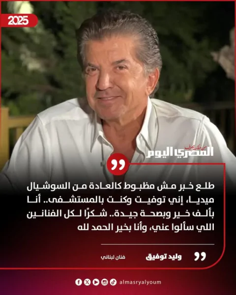 طمأن وليد توفيق جمهوره بعد شائعات وفاته، مؤكدًا أنه بصحة جيدة ولن يعتزل الغناء إلا عندما يشعر بعدم قدرته على العطاء.