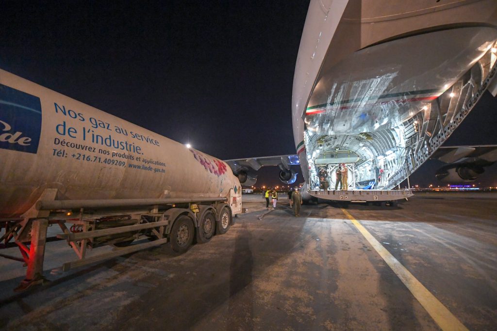 حلت، مساء الخميس بمطار تونس قرطاج الدولي، طائرة عسكرية كويتية محملة بكميات من الأكسجين منحتها دولة الكويت إلى تونس في إطار المد التضامني الأخوي لمجابهة جائحة كوفيد-19.