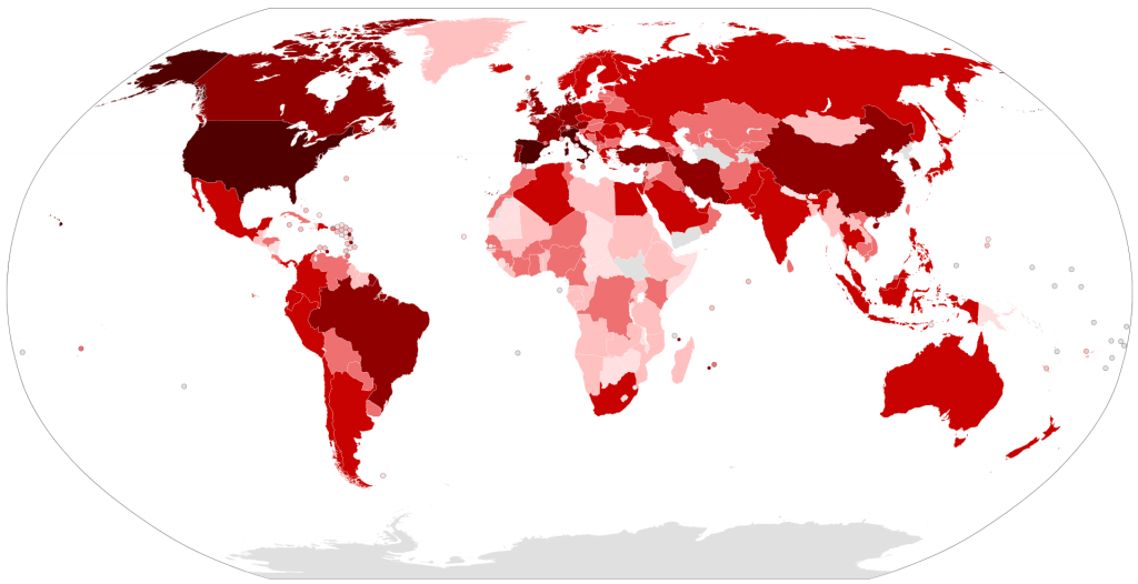 كما أوردت الإحصاءات قائمة الدول من حيث عدد الاصابات بالفيروس: