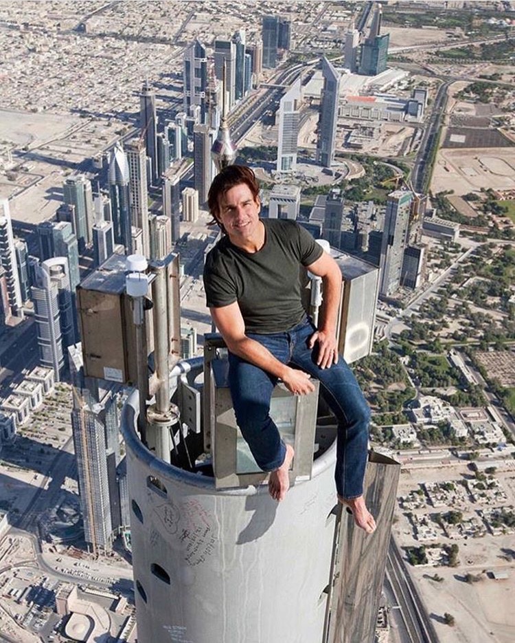 Pas étonnant de la part de l’acteur. Depuis une décennie, Tom Cruise a réorienté sa carrière vers les films d’action et d’aventure à grand spectacle, dans lesquels il tient à tourner lui-même ses cascades. Cette nouvelle passion de Cruise pour les cabrioles à hauts risques est apparue de manière époustouflante en 2011, dans «Mission Impossible – Ghost Protocol». Dans ce quatrième épisode de la série, l’acteur avait signé une scène magistrale en escaladant la façade de la plus haute tour du monde, Borj Khalifa à Dubaï. Pour l’anecdote, la compagnie d’assurance ayant refusé que la star Tom Cruise soit balancée à des filins à quelque 500 mètres d’altitude, le producteur Tom Cruise avait tout simplement rompu le contrat et trouvé un autre assureur. Et il en avait profité pour prendre une photo au sommet de la tour.