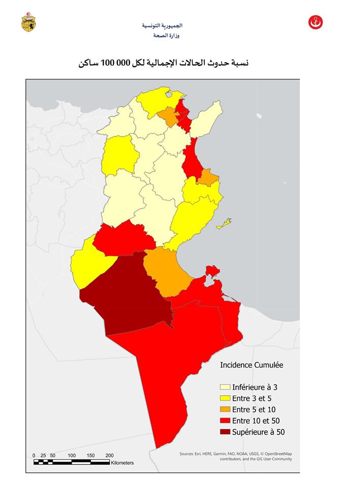 Le nombre de décès : 45 (8 à Tunis, 5 à l’Ariana, 4 à Ben Arous, 5 à la Manouba, 1 à Nabeul, 1 à Bizerte, 1 au Kef, 7 à Sousse, 1 à Mahdia, 5 à Sfax, 1 à Sidi Bouzid, 5 à Médenine et 1 à Tataouine.