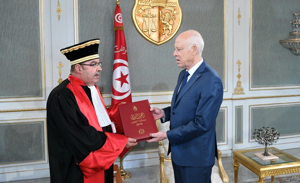 استقبل رئيس الجمهورية قيس سعيّد اليوم الثلاثاء 14 جويلية 2020 بقصر قرطاج الرئيس الأوّل لمحكمة التعقيب الطيب راشد، الذي قدّم له التقرير السنوي الأخير لمحكمة التعقيب، وذلك طبقا للفصل 115 من الدستور.