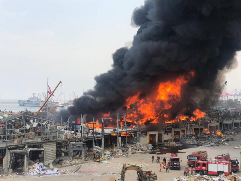 وكانت ألسنة اللهب تتصاعد في منطقة المرفأ المدمرة، لكن لم يتضح على الفور سبب الحريق.