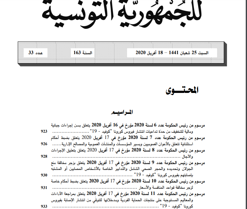 صدور التدابير الجديدة لمجابهة كوفيد 19 في الرائد الرسمي