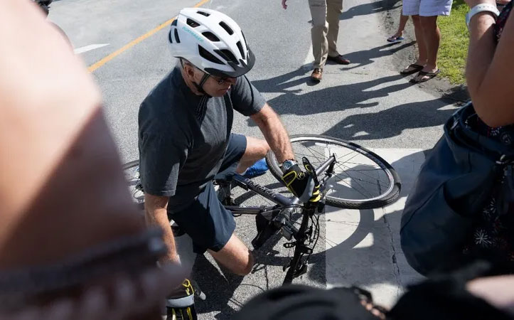 شاهد لحظة سقوط جو بايدن من على دراجته (فيديو)